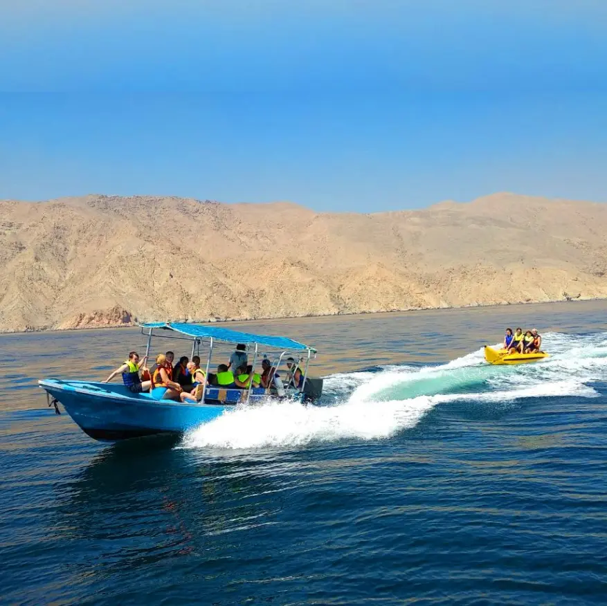 Begin your day early with a convenient pickup from Dubai, followed by a scenic 2-hour drive through the northern emirates to Dibba Port in Oman. After completing border formalities, board a traditional dhow for a relaxing cruise along the breathtaking Musandam coastline. Enjoy a variety of water activities including swimming, snorkeling, kayaking, banana boat, and speed boat rides. Explore limestone caves and take in panoramic views of fjords and fishing villages. A delicious buffet lunch with soft drinks and fresh fruits is served onboard. After lunch, leisure time continues with optional fishing or simply relaxing to traditional music on deck. By mid-afternoon, return to Dibba Port for your journey back to Dubai, concluding an unforgettable day of adventure and natural beauty.